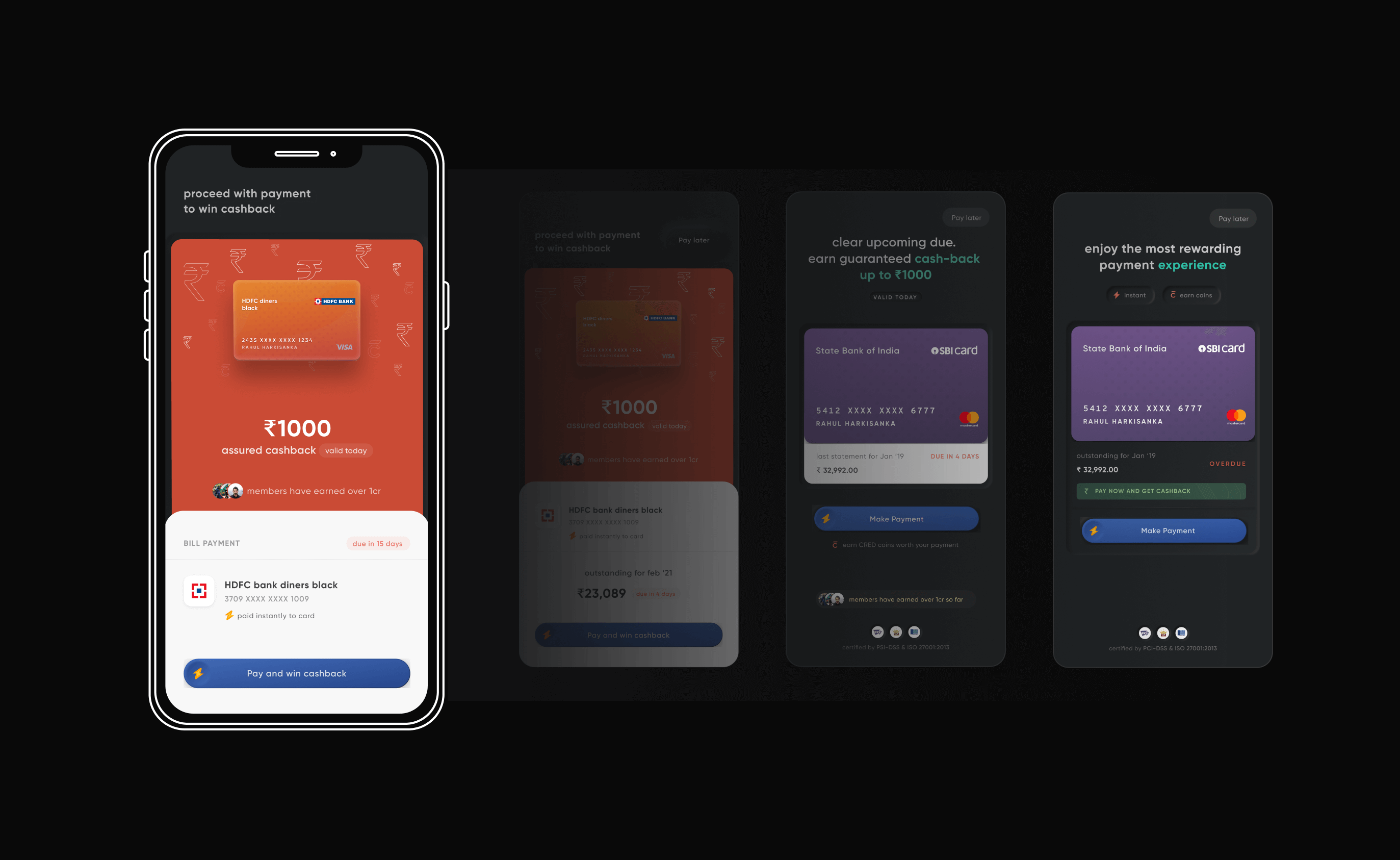 Enhancements focused on increasing users' understanding of the app's core loop: Pay bills → Earn CRED coins → Claim Reward. Screens were visually lightened and key steps highlighted to make the flow feel conversational rather than transactional.